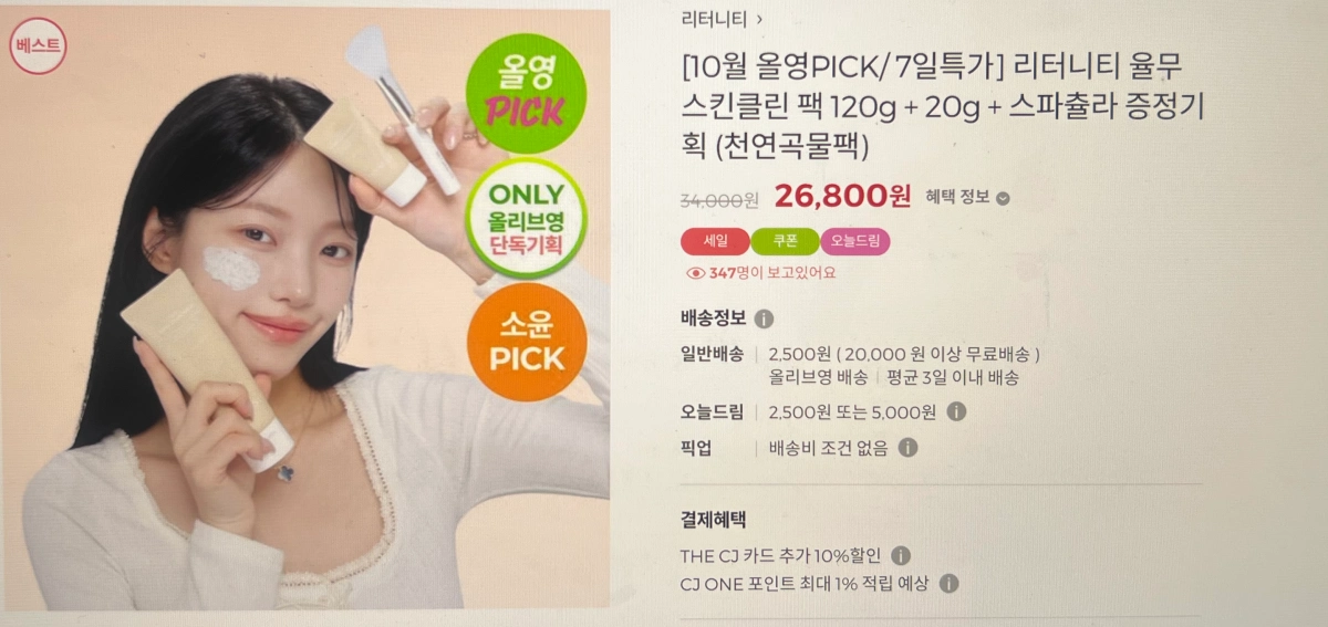 올리브영도 알아보니 26,800원입니다.(120g+20g 기준) 배송비 2,500원 별도 발생합니다.