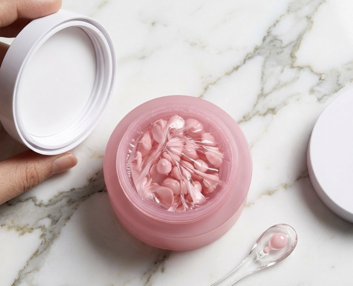 처음 배송을 받고 열어봤을 때 핑크빛 캡슐들이 알알이 박혀있는 모습이 인상적이었어요. 발림성은 생각보다 부드러웠고 손끝에서 캡슐이 톡톡 터지면서 피부에 녹아드는데 흡수되고 나면 끈적임보다는 은은한 광택이 도는 느낌이었어요.