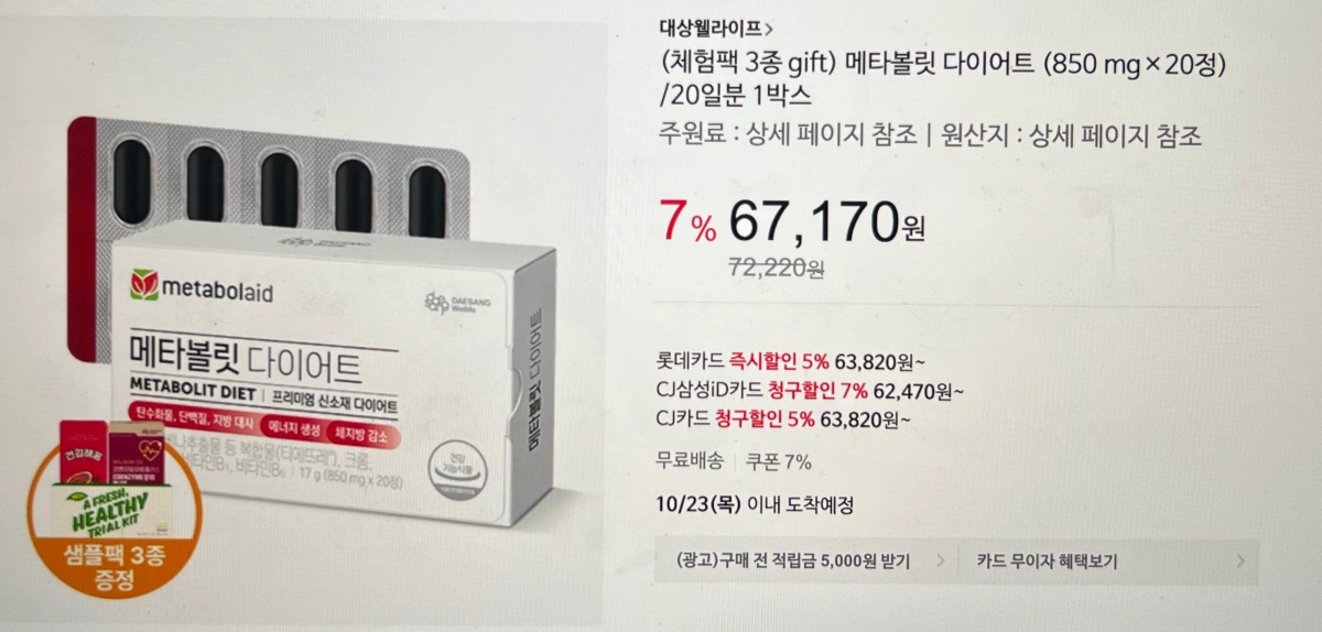 -메타볼릿 다이어트 가격 2배 저렴한 정품 주문하기: https://link.coupang.com/a/cX6MzK