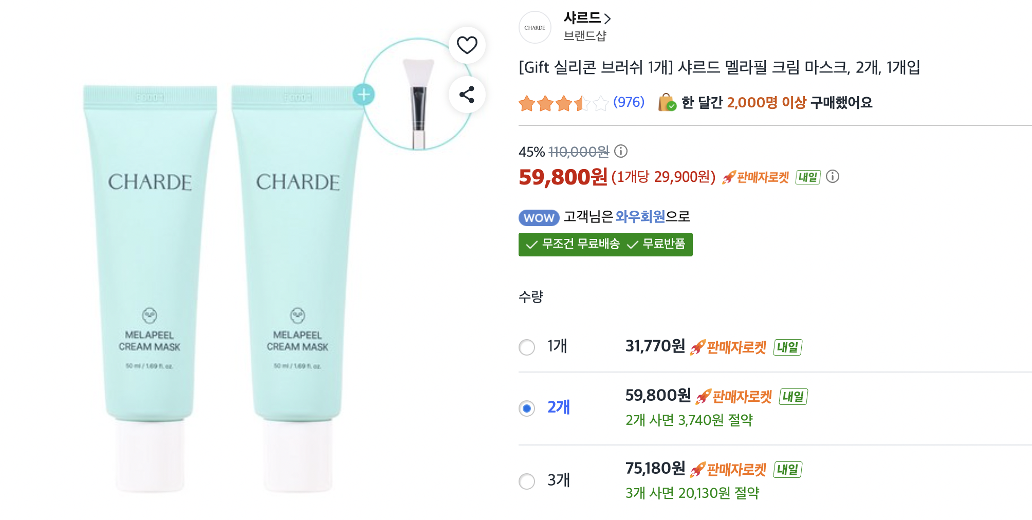 또 다른 온라인 사이트에서는 2개 59,800원에 판매되고 있었습니다. 해당 사이트가 배송이 빠르고 멜라필 크림마스크 효과는 장기간 사용 시 좋아진다고 하여 미리 두 통 구매했습니다.