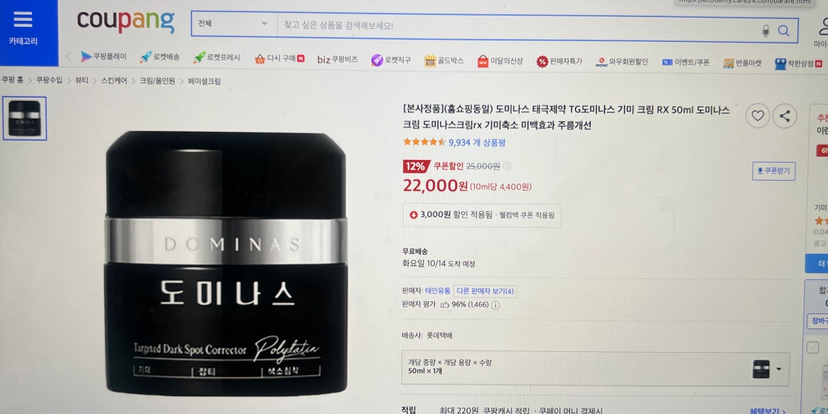 태극제약 도미나스 기미크림 홈쇼핑 동일 제품 현재 쿠팡에서 구매 가능합니다.